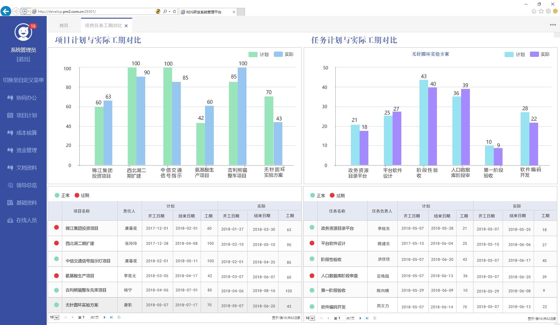 1、針對(duì)公司數(shù)量巨大的研發(fā)項(xiàng)目,在軟件中對(duì)每一個(gè)項(xiàng)目,每一個(gè)研發(fā)人員所上報(bào)的工作進(jìn)行查看,審核,做到項(xiàng)目進(jìn)度的實(shí)時(shí)管控;