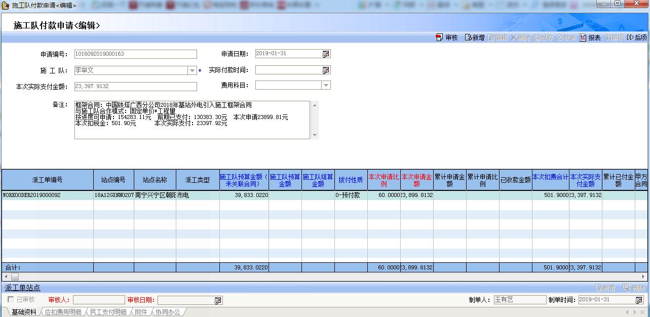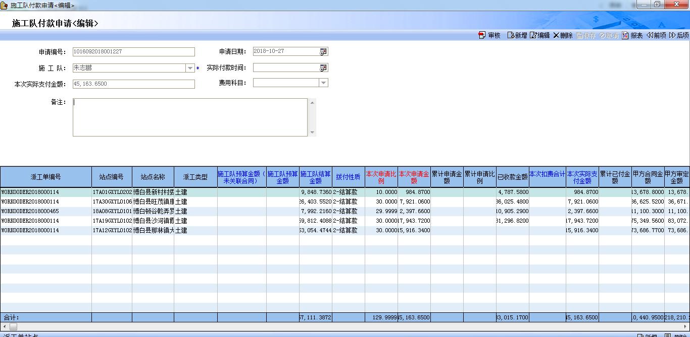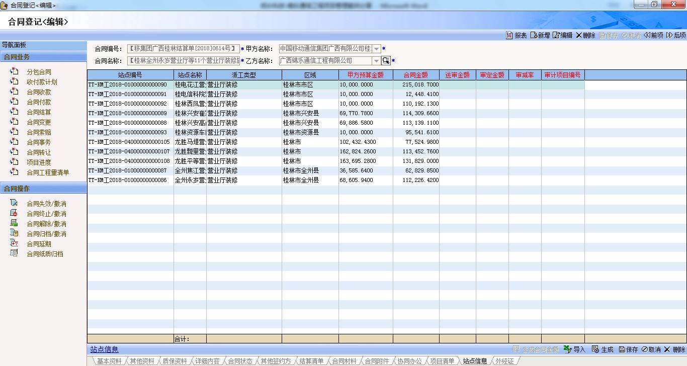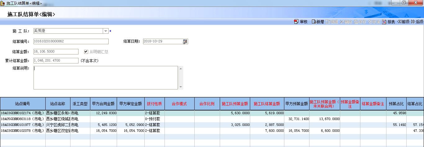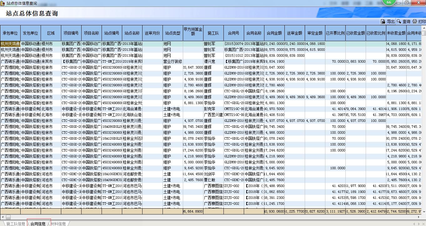 統(tǒng)計困難:施工隊派工單結(jié)算和支付(分專業(yè)),甲方多個站點簽約合同的結(jié)算、開票和收款。