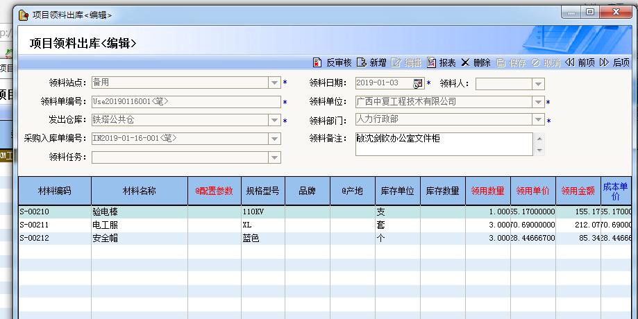 甲供設備:協(xié)調(diào)領取入庫登記和領用登記。