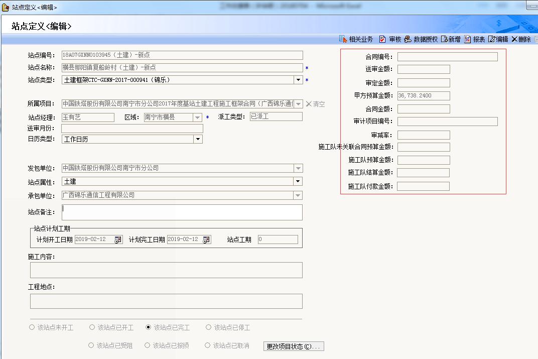 錦樂公司要求記錄運營商派單發(fā)包站點的具體施工內(nèi)容及完成時間信息,專業(yè)分包內(nèi)容等。
