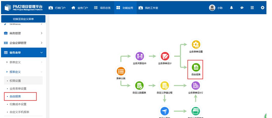 ①.菜單位置:業(yè)務(wù)表單-報表定義-自由報表