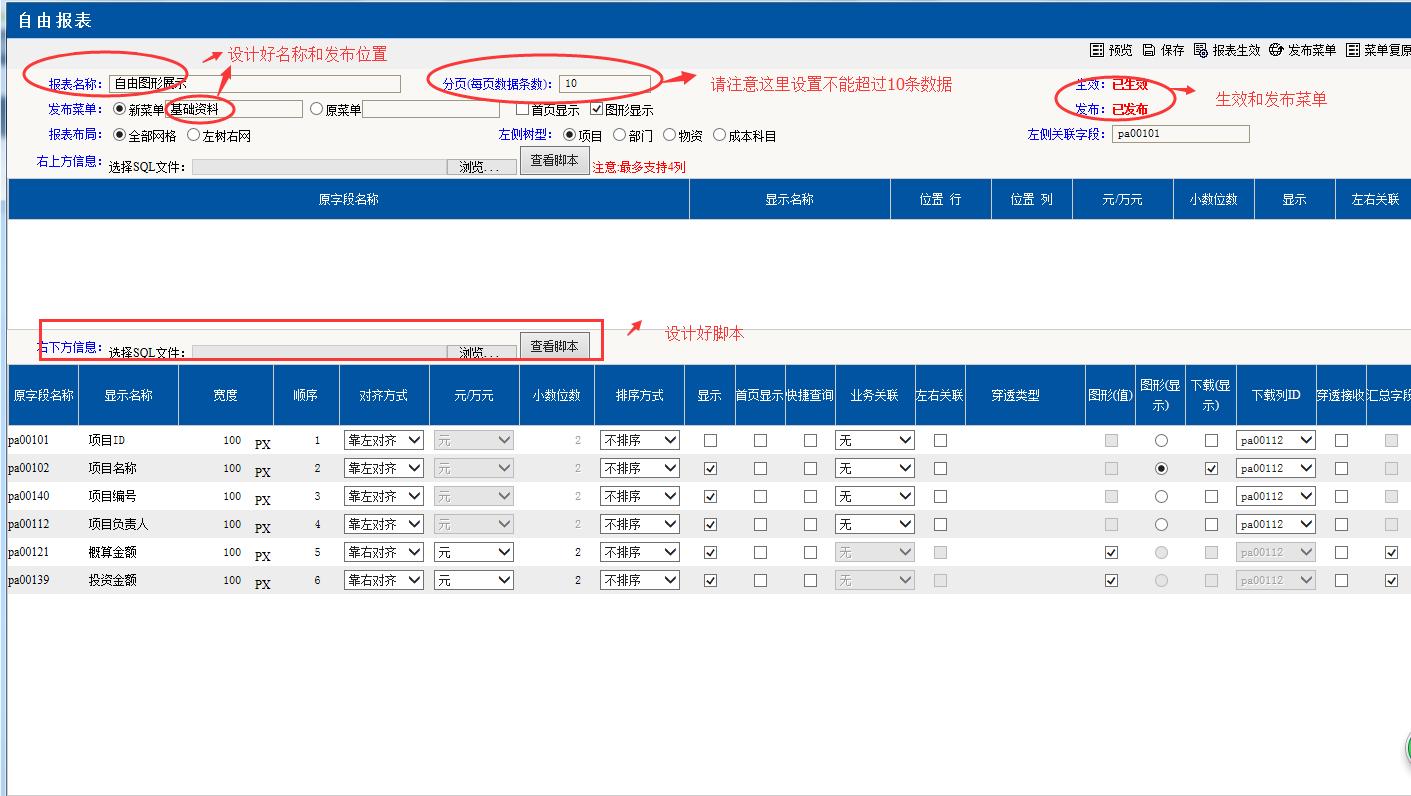 ②.設(shè)計自由報表(以查詢項目金額腳本為例)