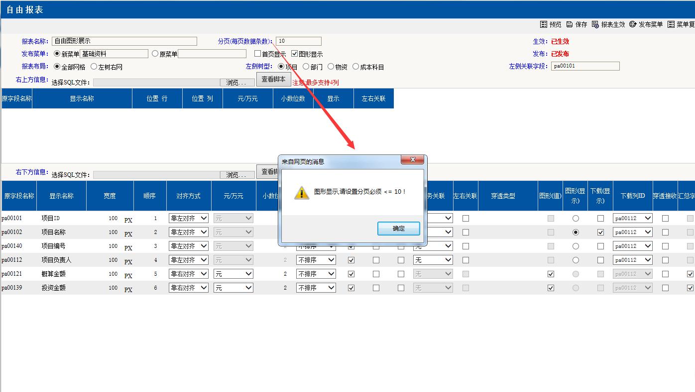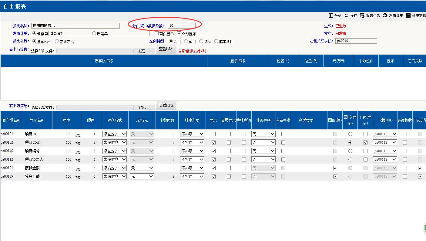 分頁的頁數(shù)顯示數(shù)量對應(yīng)在自由報表里設(shè)計的“分頁(每頁數(shù)據(jù)條數(shù))”,請注意這里的顯示數(shù)量有規(guī)定不能超過10條。