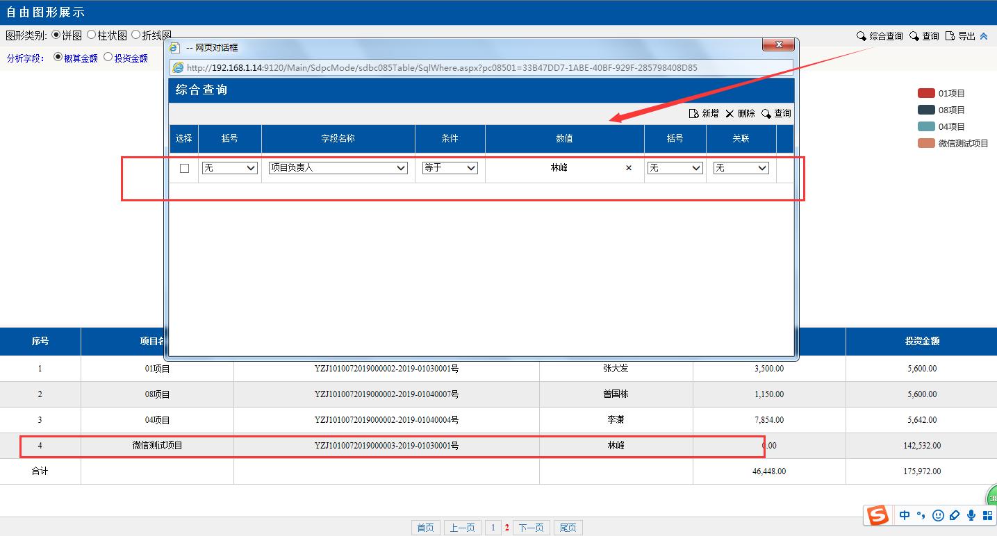 ②綜合查詢:可以輸入條件查詢要找的數(shù)據(jù)