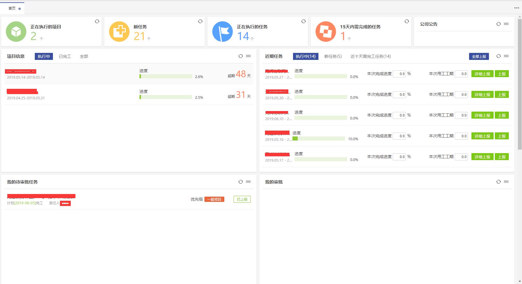 進(jìn)入系統(tǒng)即可一目了然的查看正在執(zhí)行的項(xiàng)目,待接收的新任務(wù)、已經(jīng)執(zhí)行的項(xiàng)目、15天內(nèi)需要完成的任務(wù)數(shù)量及關(guān)聯(lián)任務(wù)的進(jìn)度近況。且支持穿透查詢。