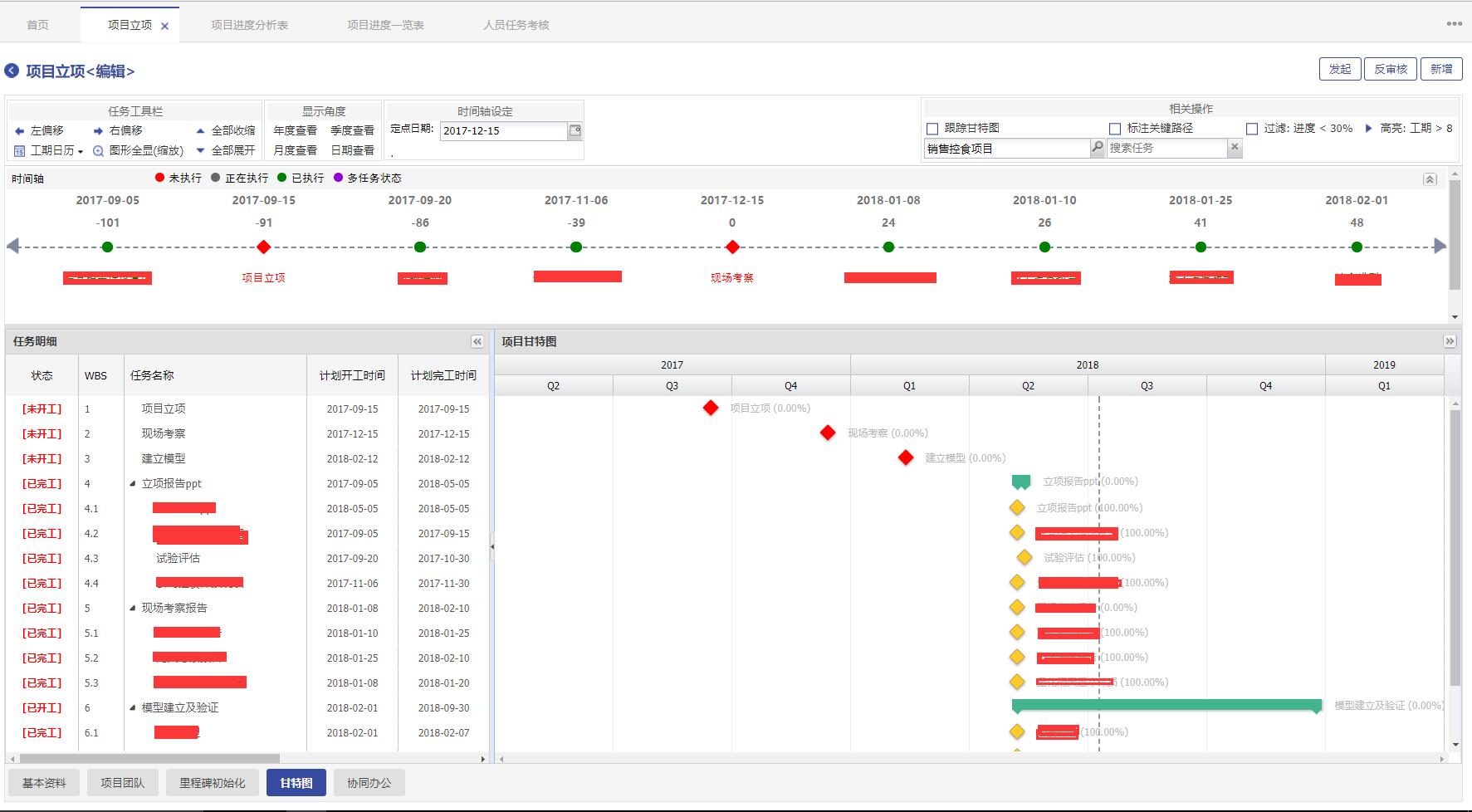 3、進(jìn)度計(jì)劃時間軸及甘特圖展示