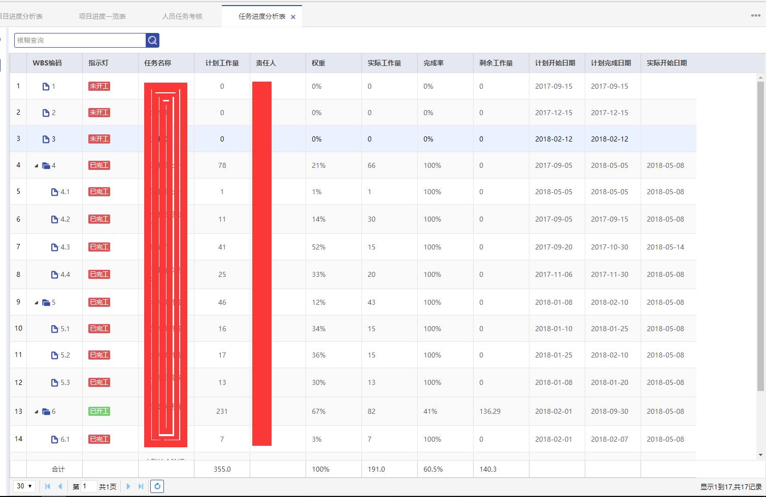 項(xiàng)目任務(wù)進(jìn)度分析表。