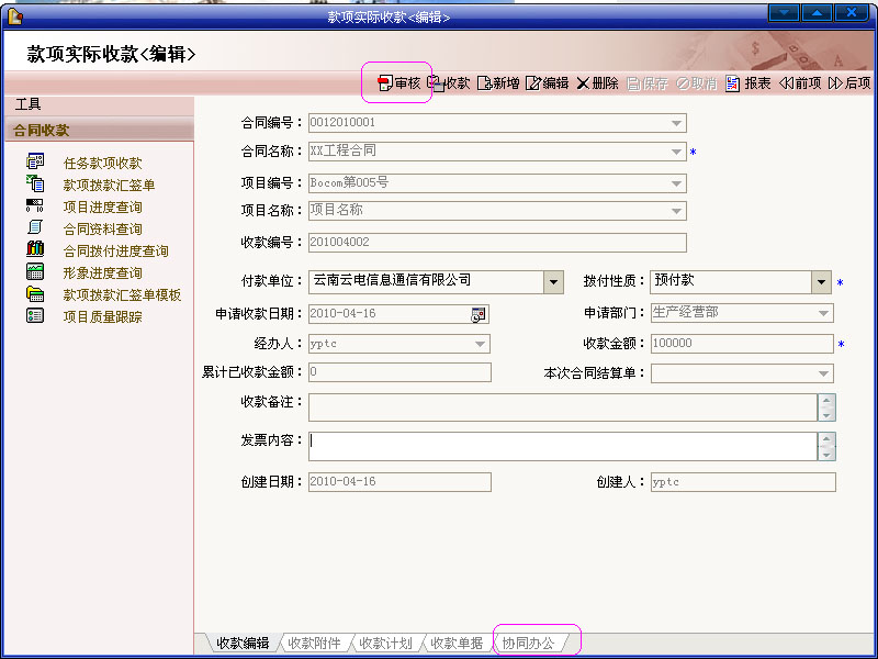 (6)實現(xiàn)對年度資金計劃、非合同資金計劃、部門月資金計劃、公司資金計劃、項目資金收支管理;